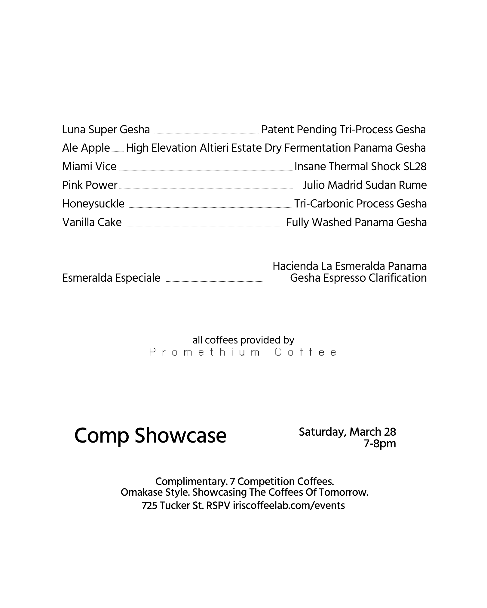 Our most communal event - casual and intimate space for enthusiasts and competitors alike to partake in world class coffees, away from the heat of competition. Community and moments like these are what shapes the future of our industry - as one of the flagship locations for enthusiasts and industry folk while in town, Iris is creating this space privately. We will be offering a private celebration of seven segment shaping competition coffees totally complimentary to all curious minds, in an omakase style format. Reserve a seat free, and join us to connect with kindred spirits and enjoy what makes our industry like no other: beautiful souls sharing one space together.